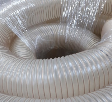 Армований гнучкий поліуретановий трубопровід до 160*0,7 мм польського виробництва, виготовляється за німецькими технологіями. На відміну від аналогів, він має гладку внутрішню поверхню, що не дає забиватися матеріалами, які транспортуються по ній.